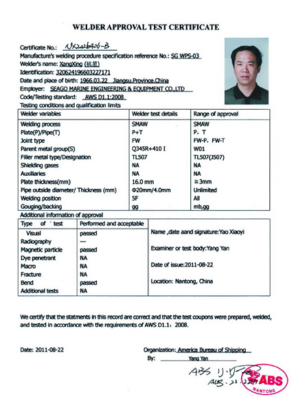 Class Certificate - ABS