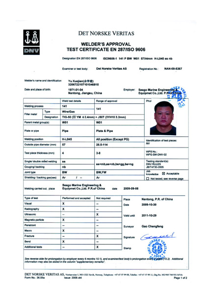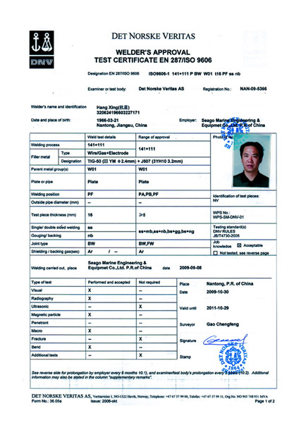 Class Certificate - DNV